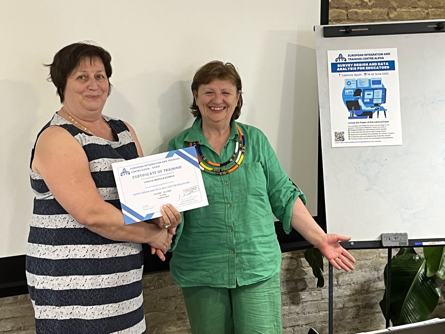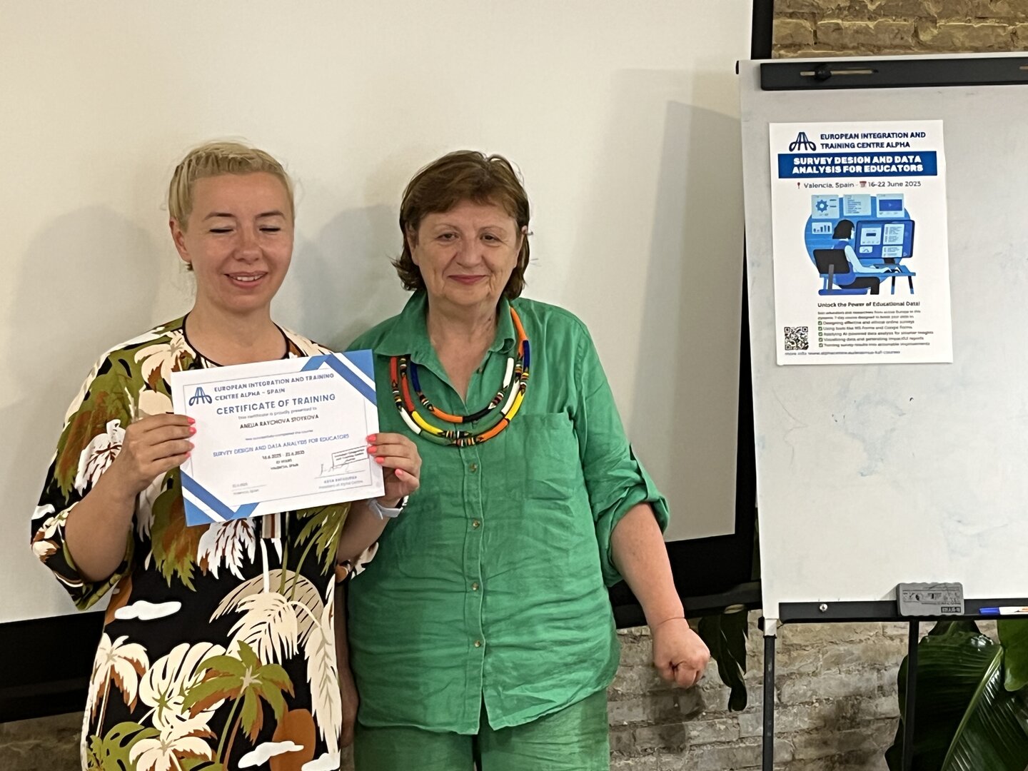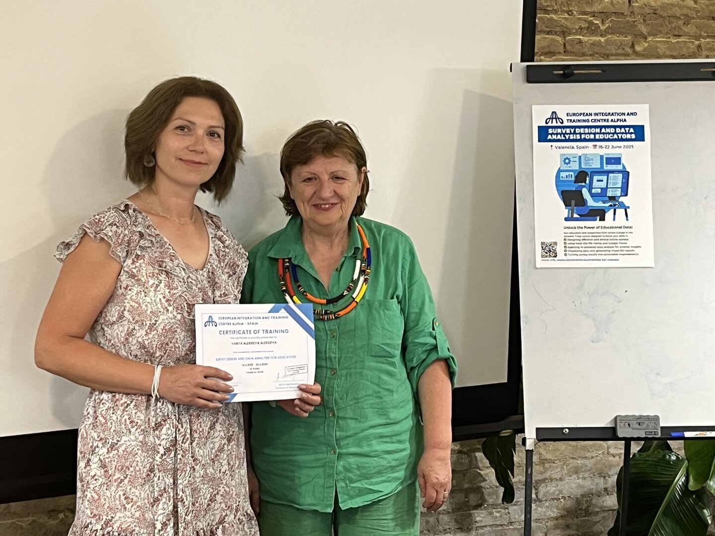 От 16 до 22 юни 2025 трима педагогически специалисти от ДГ 65 „Слънчево детство“ участваха в структуриран курс на тема „Анкетиране и анализ на данни в образованието“, проведен във Валенсия, Испания. Обучението бе организирано от European Integration and Training Centre ALPHA и бе насочено към разработването и прилагането на онлайн анкети в образователен контекст. Нашите колеги се запознаха с принципите на ефективното проектиране на въпросници, използването на MS Forms и Google Forms за създаване, разпространение и събиране на данни, както и с техники за анализ на количествени и качествени данни. Специален акцент бе поставен върху прилагането на изкуствен интелект за интерпретация на резултати и извеждане на смислени изводи от данните. В рамките на курса участниците разработиха и представиха цялостен проект за проектиране, реализиране и анализ на анкета, като затвърдиха уменията си за етично събиране на информация и прилагане на добри практики в работата с родители, деца и учители.