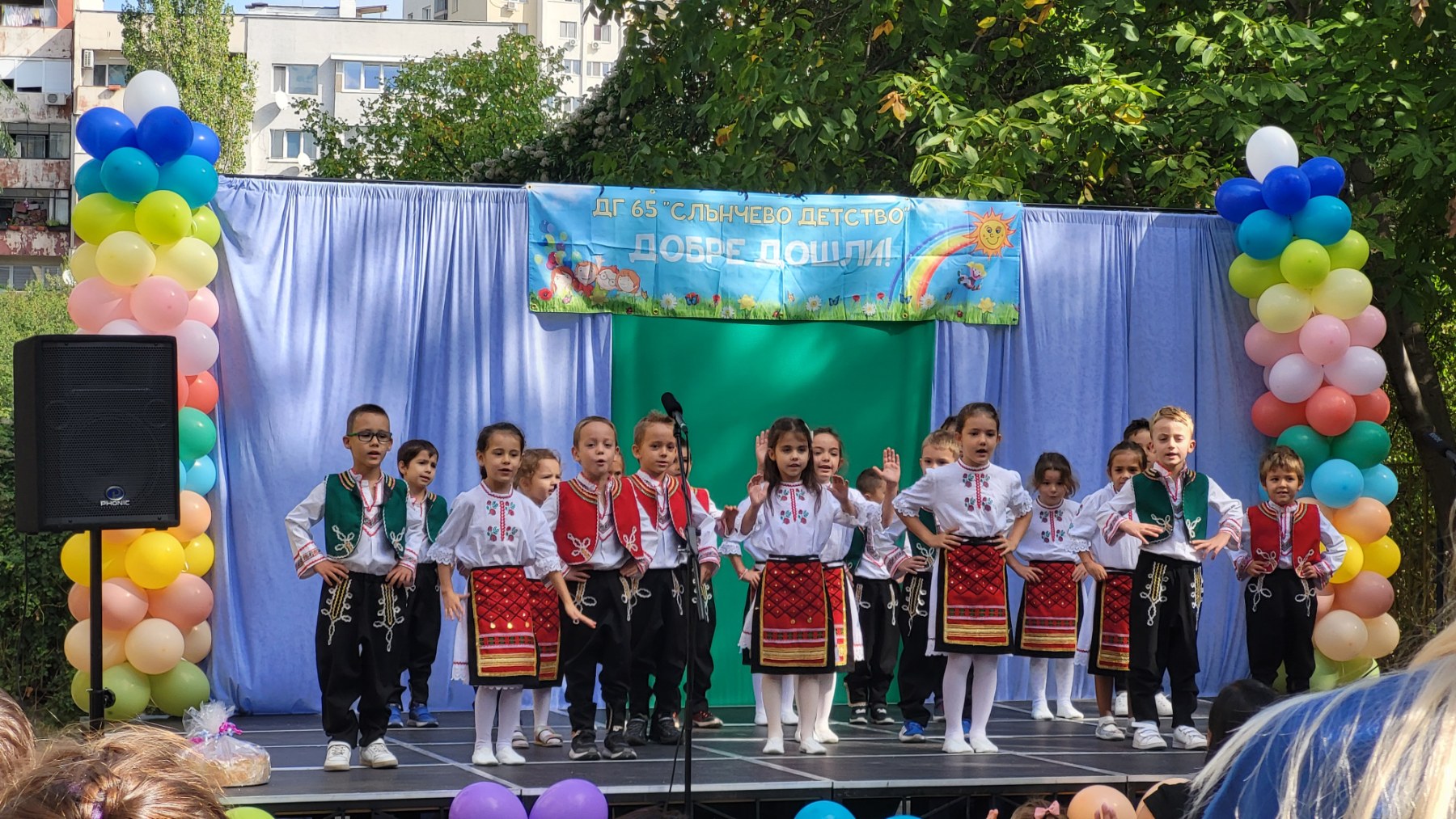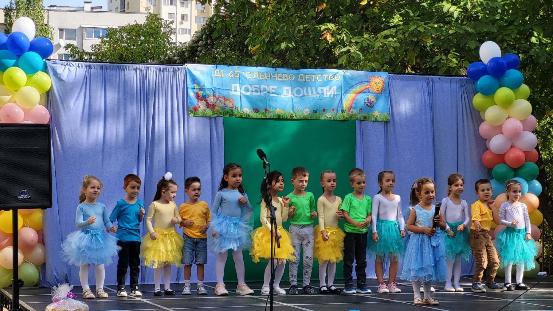 На 15 септември 2025 г. в ДГ 65 „Слънчево детство“ тържествено бе открита новата учебна година. Децата посрещнаха своите учители и родители с пъстра и вълнуваща програма, изпълнена с песни, танци и усмивки. С много настроение и аплодисменти всички заедно поставихме началото на още една успешна и слънчева година, изпълнена с нови знания, приятелства и незабравими мигове.