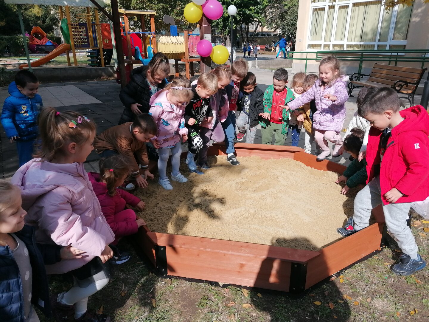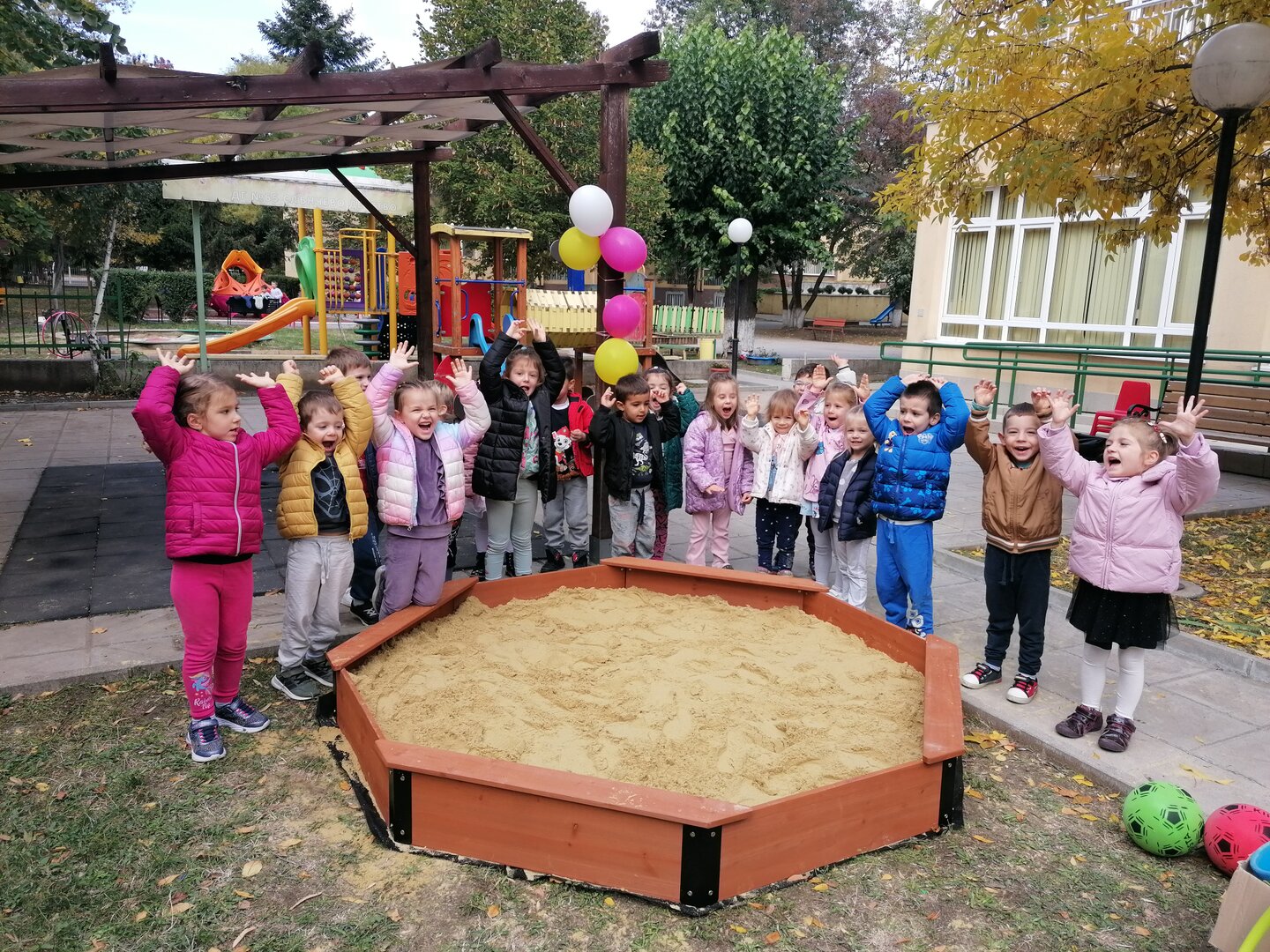 През октомври 2025 година децата от група "Пчеличка" се сдобиха с нов пясъчник. Той е дарение от родителите. Пясъкът не съдържа вредни вещества и фин прах, а освен това отблъсква кучета и котки, което осигурява безопасна и чиста среда за всички малчугани. Благодарение на този прекрасен жест децата ще могат да се радват на още повече игри, творчество и весели моменти на открито.