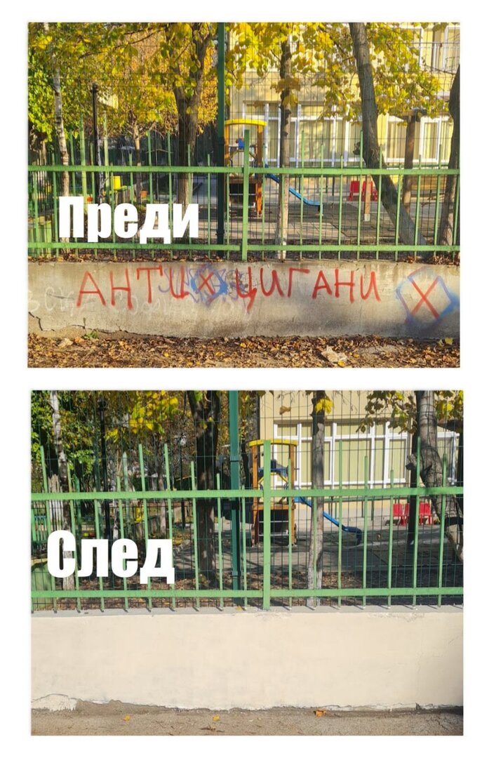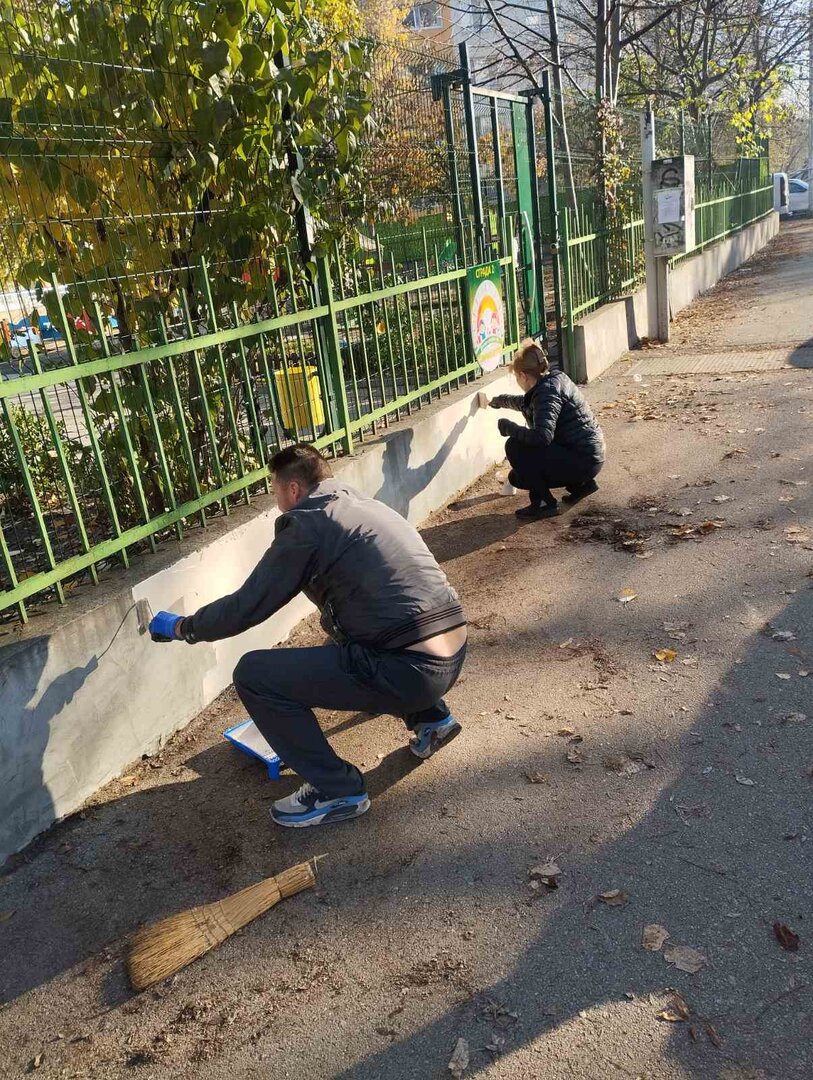 В събота, 15 ноември 2025 г., родители на деца от ДГ 65 „Слънчево детство“ се включиха в инициатива за подобряване на пространството около детската градина. Заедно, с много желание и труд, те почистиха и боядисаха бетонната ограда от външната страна, като премахнаха нанесени върху нея грозни и обидни надписи.